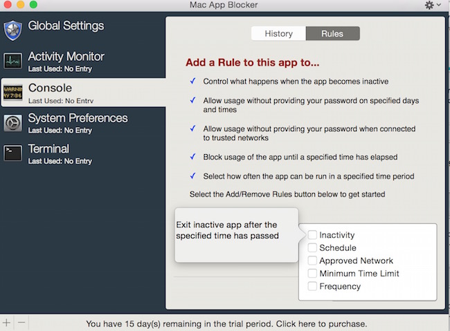 Now you know how to Password protect individual apps on Mac. It requires OS X 10.7 or later version. The app is free to try for 15 days. Thereafter, $ 9.95 needs to be paid.
