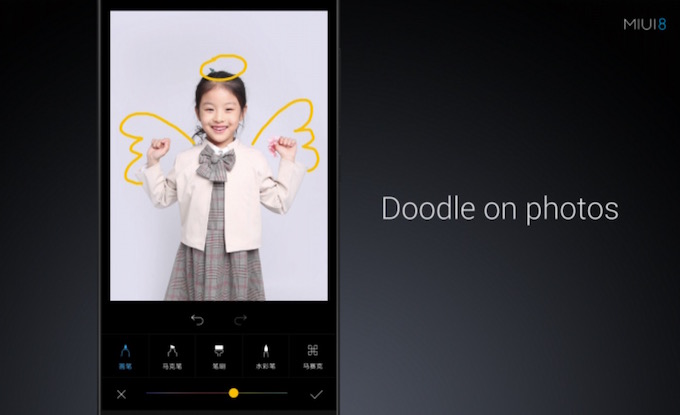 Xiaomi has added many great features in Gallery. Now it is 90% more space efficient, you can simply enable Cloud storage to store your captured photos to cloud. They have also added, new Video Editing feature with music and effects, Doodles and Stickers. Now users can change the effect by simple tap or share photos quickly by swiping up.