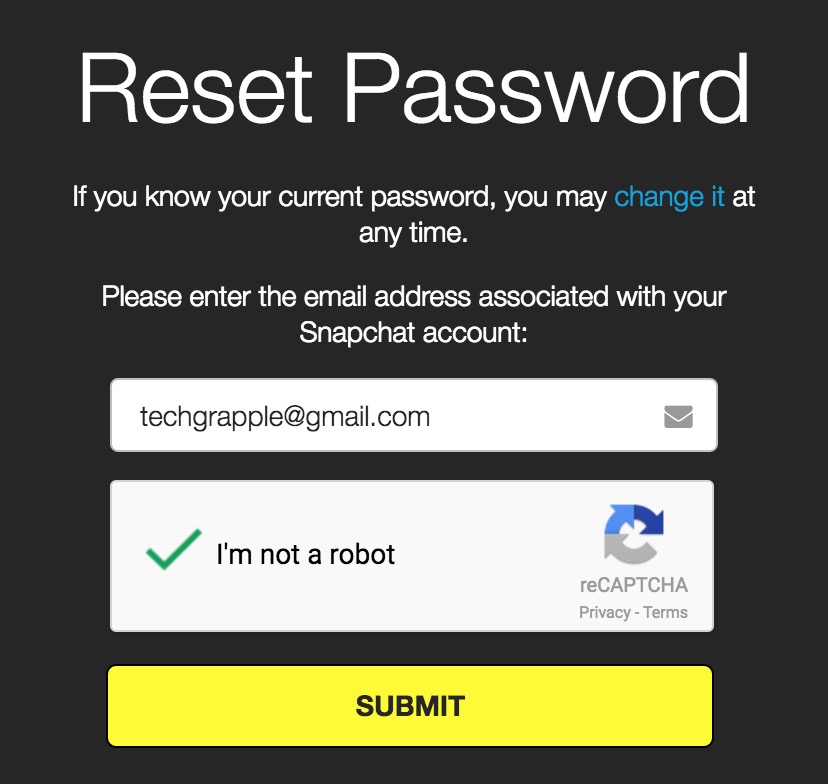 - Snapchat will send a link to your email Address, and you need to click on the link provided in the email, and it will take you to Password Change page. Now you can type a new Password for Snapchat Account.