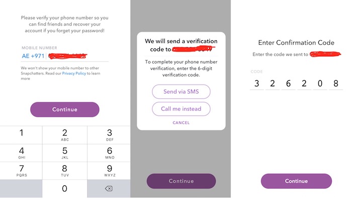 - Now select the Country Code, and type your Mobile Number without zero, and tap Continue. Select to get 6-digit verification code via SMS or Call, Type the verification code in the provided field, and tap Continue.