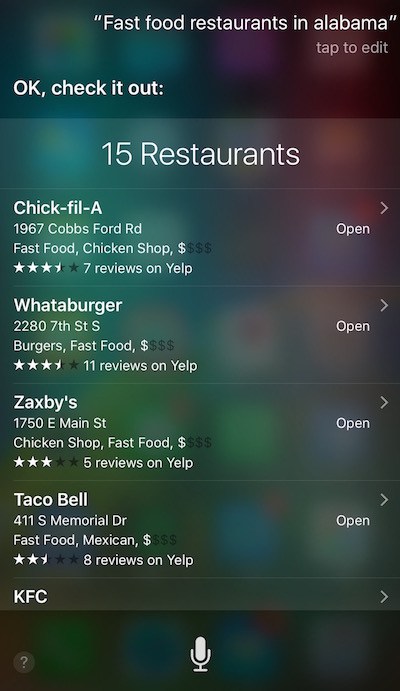How to use Google Now or Siri Voice Assistant app to find Fast Food Restaurants