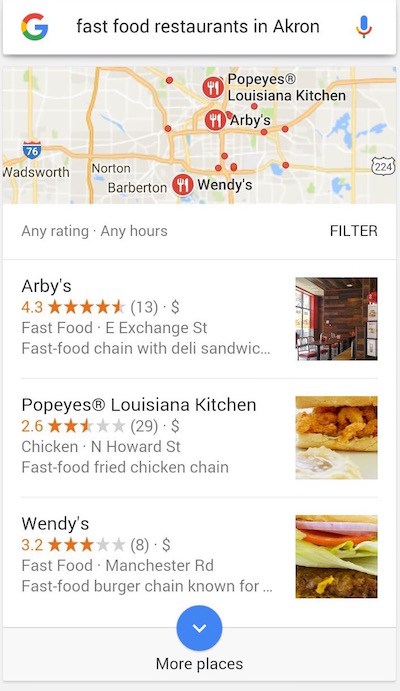 How to use Google Search to Search Fast Food Restaurants?