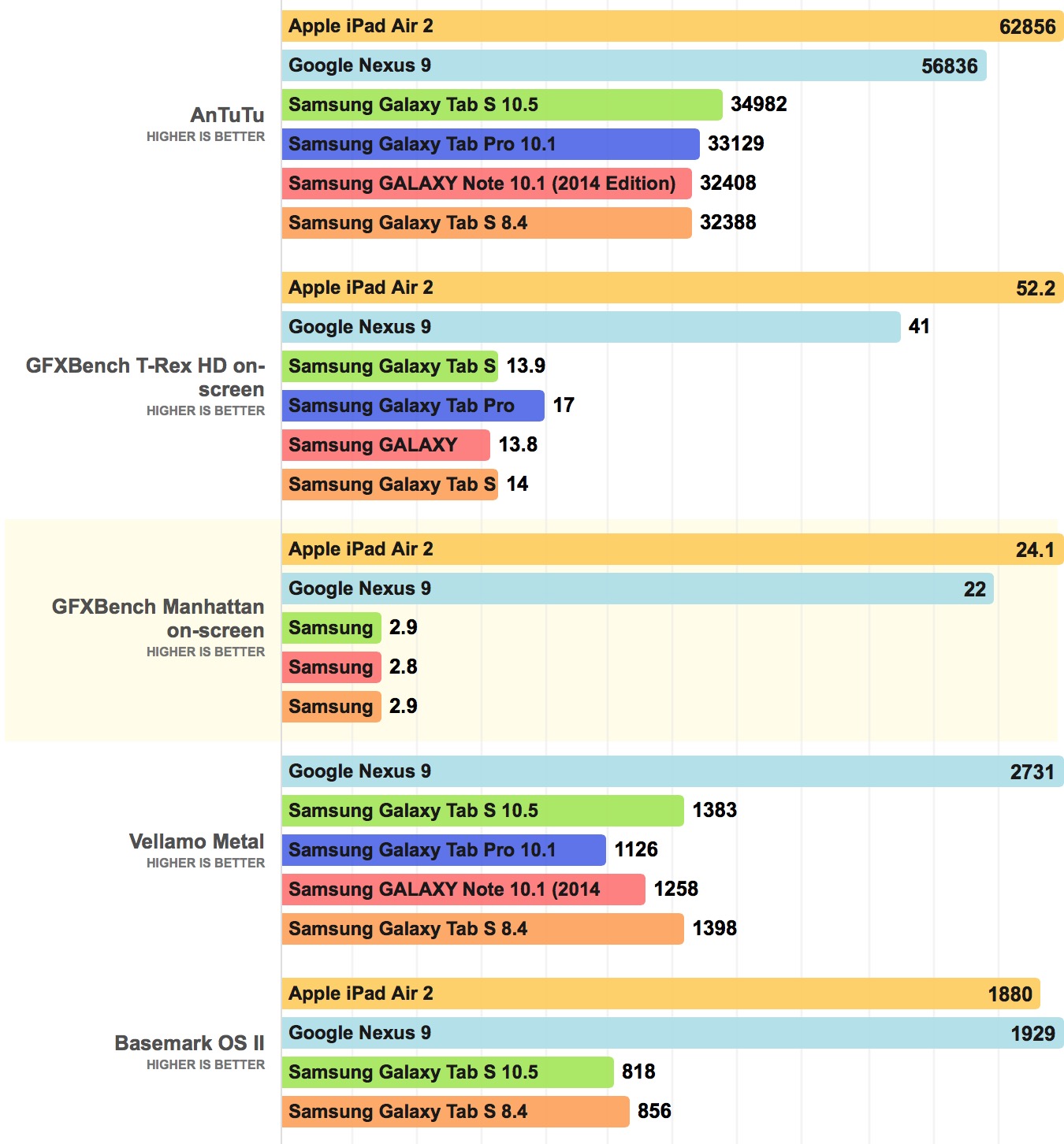 If we talk about the performance benchmark Samsung Galaxy Tab S fell far behind iPad Air 2 according to the report published by PhoneArena. Here is the benchmark report: