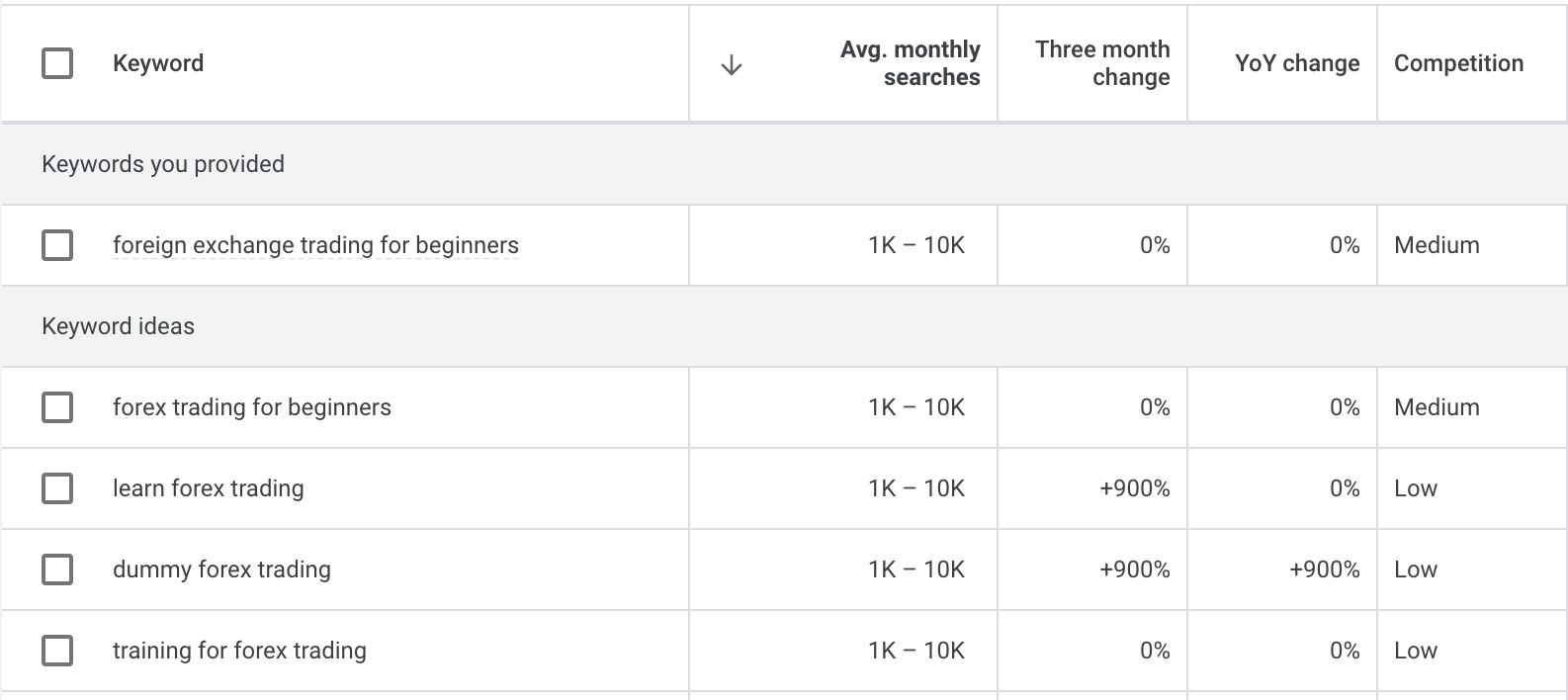 - Long-tail keywords: These are more targeted and specific terms such as “How to get started in forex trading” or “Foreign exchange trading for beginners” They are used less often than general keywords. Get the help of Google Keyword Planner to achieve this.
