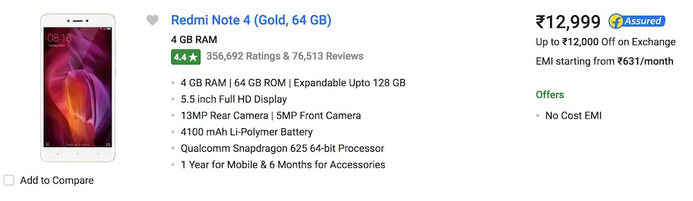 - Buy Redmi Note 4 + DSLR: 12,999 + 23,499 = 36,498 Rs.