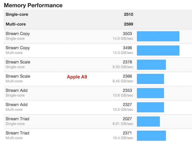 Here is the screenshot; Apple A9 vs Snapdragon 820 memory performance