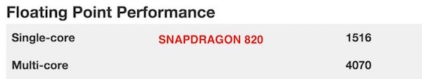 Here is Floating Point Performance and Integer Performance score; Snapdragon 820 vs Apple A9