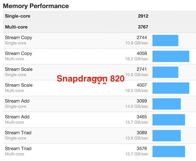 Snapdragon 820 scores better than Apple A9 in memory performance
