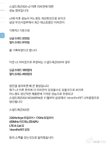 Have a look at Snapdragon 820 V2 and V3 benchmark score