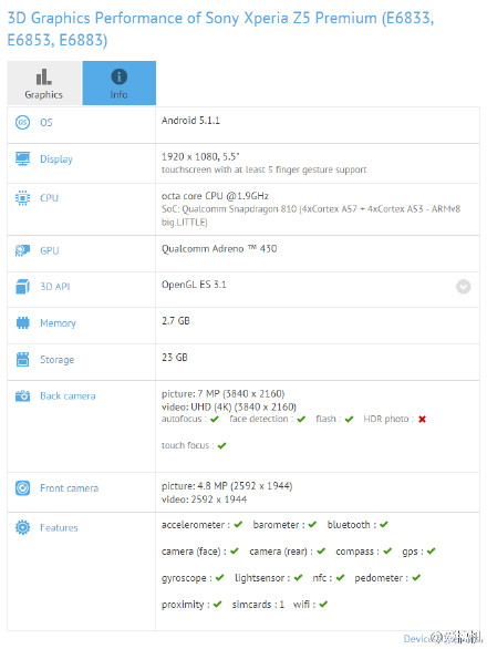 Sony has recently unveiled three models of Z5 family, and one of them is known for the highest resolution any smartphone never featured. Sony claimed that Xperia Z5 Premium has 4K display, but the Graphic Performance report says something different.