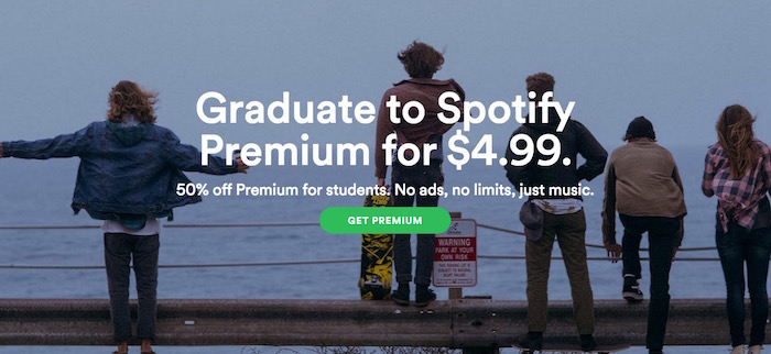 Spotify Premium will give unlimited ad-free access to millions of music that you can stream on Spotify. You can also save songs for offline access, and you can save data. The premium service also comes with better sound quality and unlimited skip option. You can visit this page to subscribe to Spotify Premium for Student, and enjoy premium service at 50% discount, $4.99 each month.