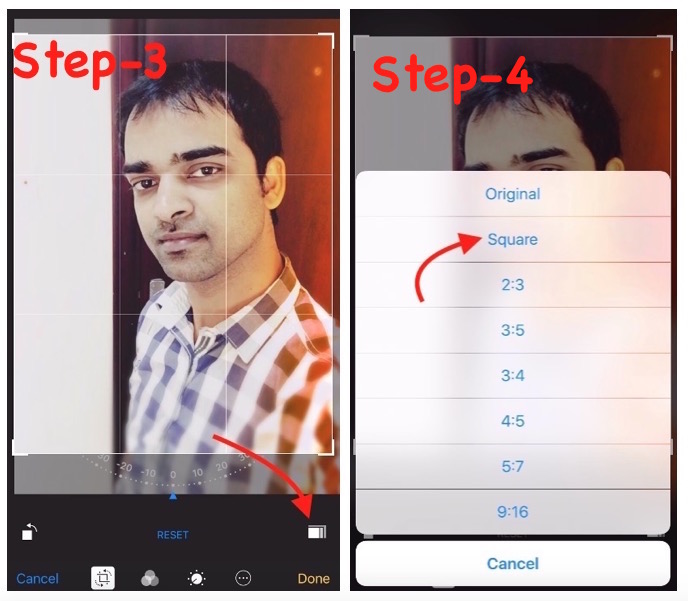 - That’s it, you have squared the Photo. Click on done, and you can use it on Social Media websites and apps. You can watch the video if you are still facing any issue