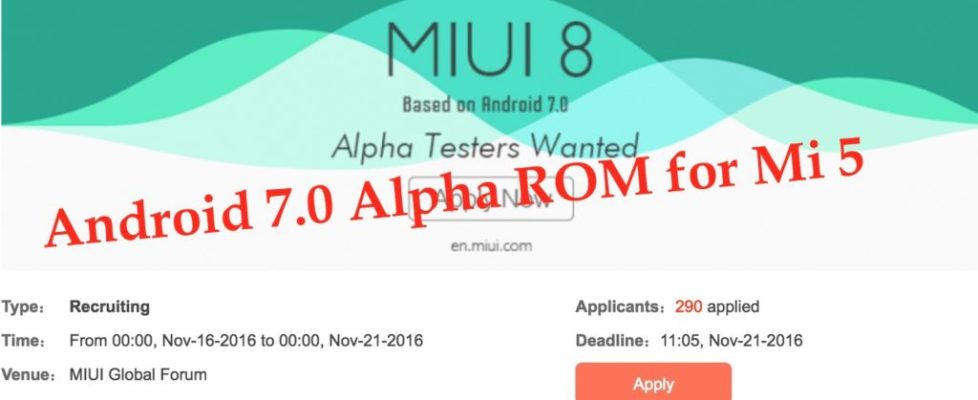 Get Android 7.0 Chinese Tester/Alpha ROM for Xiaomi Mi 5 : Apply Before November 21