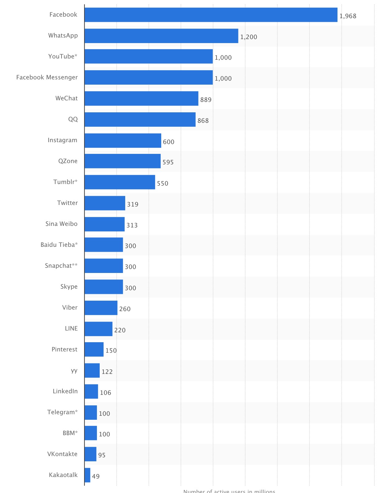 Top 23 Global Social Network Websites / Apps and Number of Active Users as of April 2017