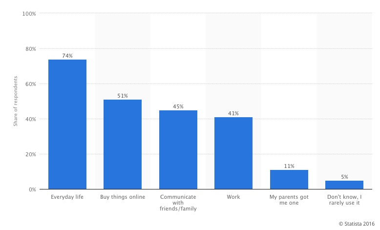 Note : The data is based on many surveys, so it won’t make 100% if you add all. For example, out of 100 people 51 of them agreed that they use email for Online shopping, so it has been considered as 51%. These users may or may not have agreed to use email at work.