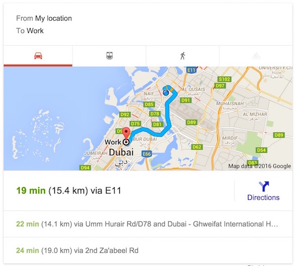 - In the screenshot above, I have found 3 routes to reach my office. Clicking on each route will show the full direction