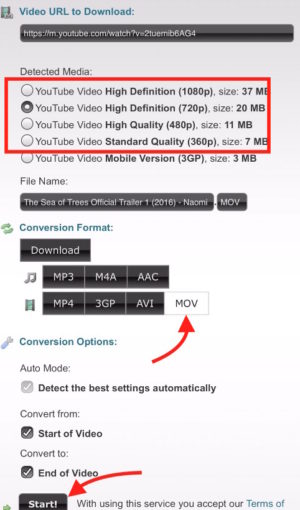 - You must select MOV format to download the file. VLC fails to save MP4 format