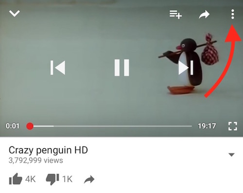 - Now tap on menu icon (represented with 3 dots). If you can’t see menu icon, tap on video to make it visible
