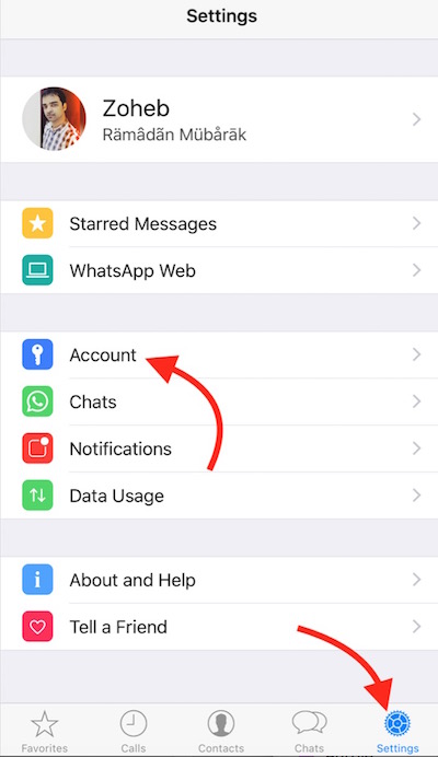 - Launch WhatsApp Application, and tap on Settings (Gear icon)