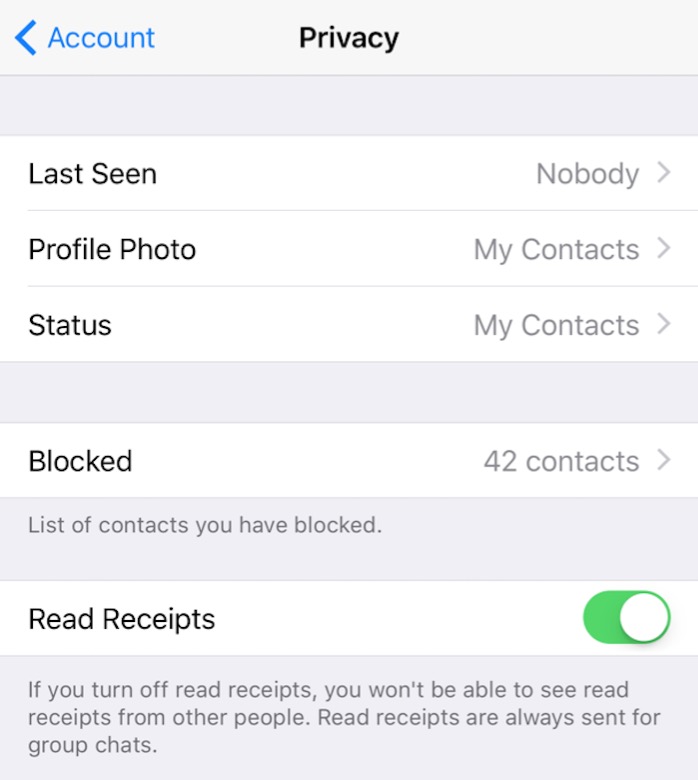 These are the options you can find under WhatsApp’s Settings–> Account –> Privacy