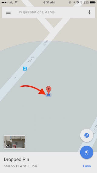 - Tap and hold the Blue dot sign to drop pin. Dropped Pin will appear in red color
