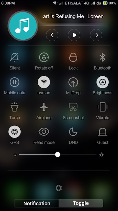- Toggle (shortcuts) icon increases automatically from 9 to 16 (that usually needs to be added manually in default and downloaded themes)