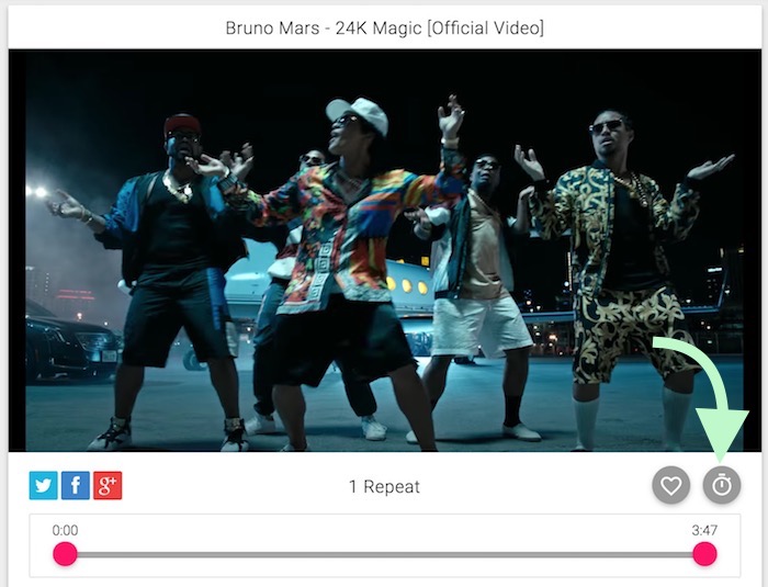 - Play the video, it will repeat automatically. You can also click on timer icon to set the start and end time for auto replay.